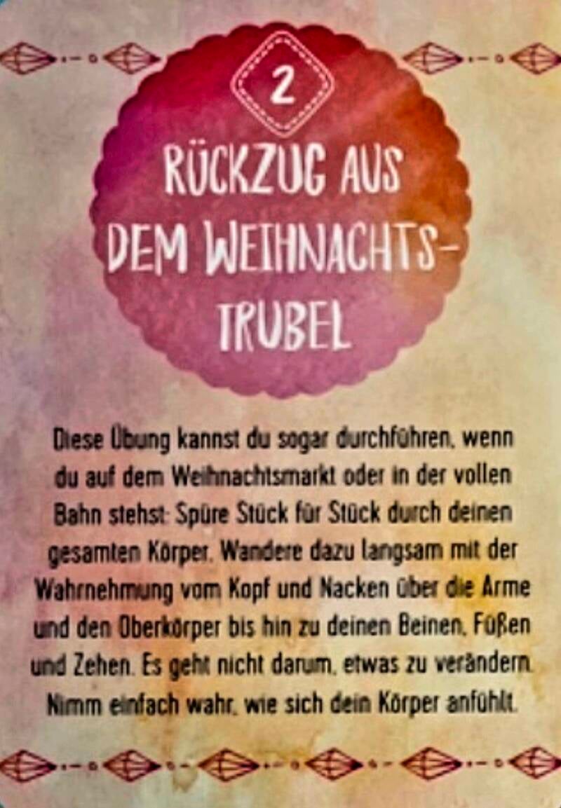 Türchen Nummer 2 hat mich gestern dazu animiert, den Tipp gleich in die Tat umzusetzen. Und ich habe zumindest einen Teilerfolg erzielt: lch war auf dem Weihnachtsmarkt. Und mitten im Weihnachts-Trubel. Das mit dem Rückzug hat auch geklappt. Aber anders😉 Aber immer schön der Reihe nach. Das muss alles seine Ordnung haben