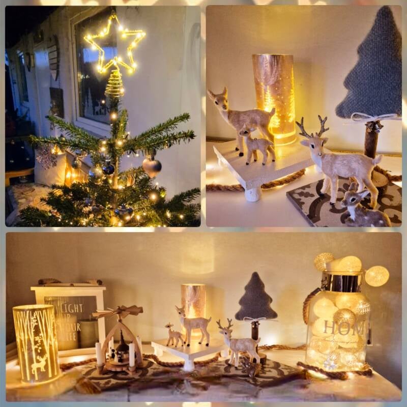 Dann habe ich noch ein bisschen aufgeräumt, dekoriert, geschmückt und aufgebaut... jede Menge Batterien eingesetzt und mich davon überzeugt, dass auch alle funktionieren. Was zum Glück der Fall war und zu einem sehr schönen Ambiente geführt hat - auch im Haus 🌟 Und als ich mit dem optimistischen Gesamtzustand halbwegs zufrieden war... habe ich beschlossen, einkaufen zu gehen. Denn zwischenzeitlich war es ganz schön kalt geworden und ich habe ziemlich gefroren... das könnte natürlich auch meinen Gästen passieren. Weshalb ich Holz besorgt habe und dringend zu langen Unterhosen rate 🤣 Vielleicht ist das aber auch gar nicht nötig...denn