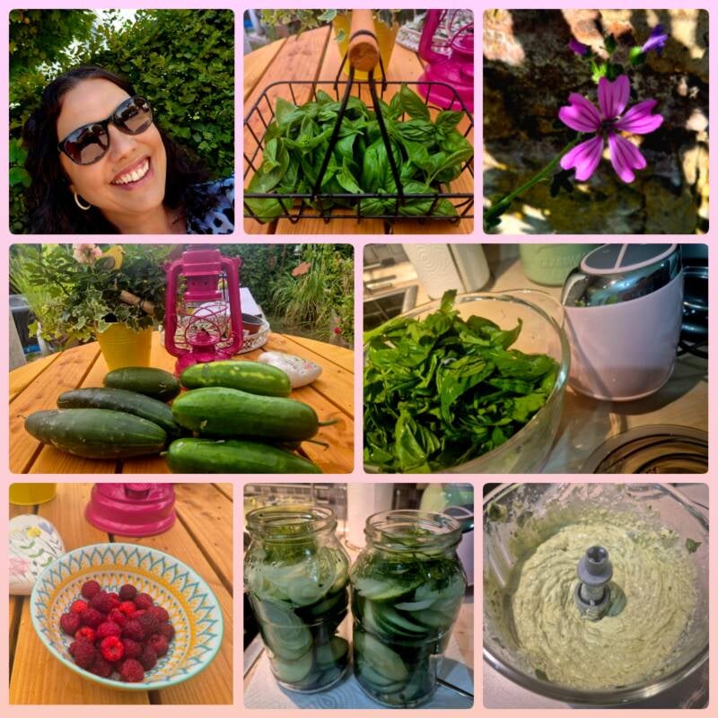 Aber Spaß beiseite... ich freue mich sehr über die reiche Ernte dieses Jahr und darüber, dass ich daraus leckere Sachen machen kann. Und ich probiere gerne neue Rezepte aus. So kam es auch zu der Basilikum-Zitronenbutter. Die hat meine Freundin mir empfohlen, nachdem sie mein explodiertes Basilikumpflänzchen gesehen hatte. Und ich kenn sie euch empfehlen, denn sie ist sehr lecker (zumindest wenn man Butter, Basilikum und Zitrone mag 😉). Ob das mit den Gurken klappt, ist allerdings fraglich. Denn die Gläser sind ganz schön voll und ich bin nicht sicher, ob das so muss. Aber das werde ich herausfinden, wenn es soweit ist.